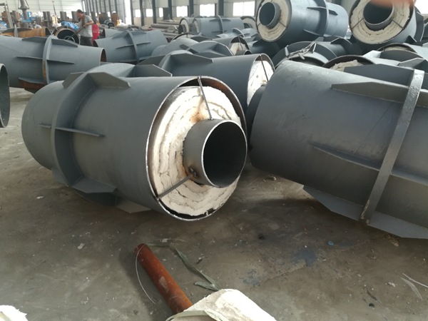 帶翼板鋼套鋼固定支架采用獨(dú)特的內(nèi)固定結(jié)構(gòu),用三層鋼法蘭與兩層石棉法蘭保持內(nèi)外鋼管之間的相對(duì)固定,高溫隔板材料有效防止冷橋產(chǎn)生,施工無(wú)需加鋼筋混凝土結(jié)構(gòu).內(nèi)外鋼法蘭的相對(duì)固定可根據(jù)設(shè)計(jì)要求承受足夠大的軸向推力,能充分保證整條管線的安全運(yùn)行.